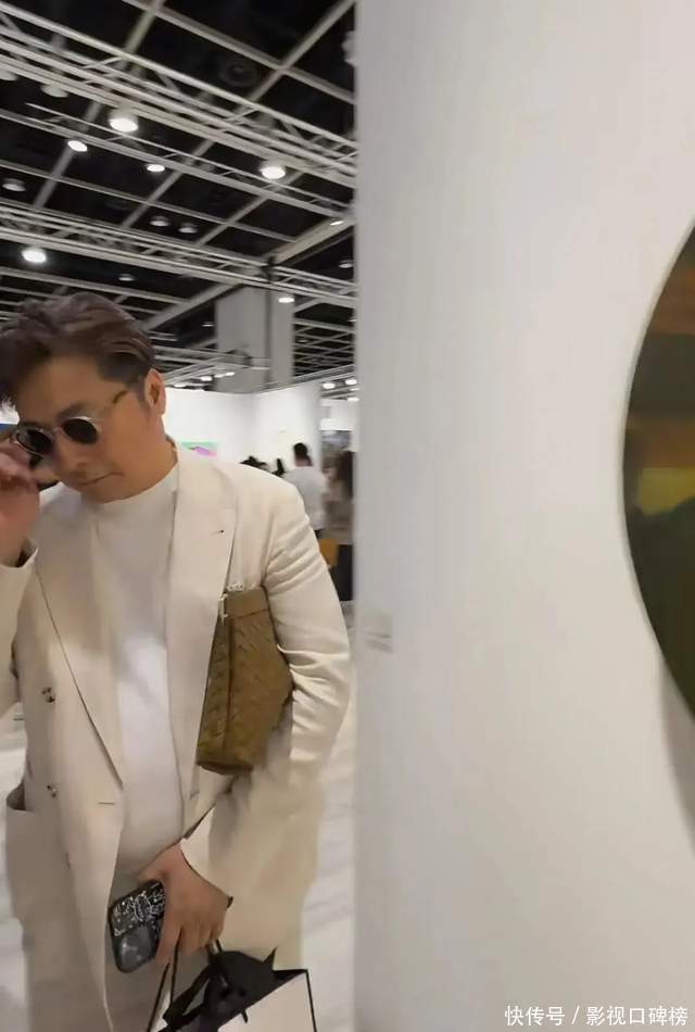 王岳伦穿着一身白色衣服,手时拎着一个棕色包包,同样是戴着墨镜。王岳伦年过50岁,身材也开始发福了,肚圆滚滚。