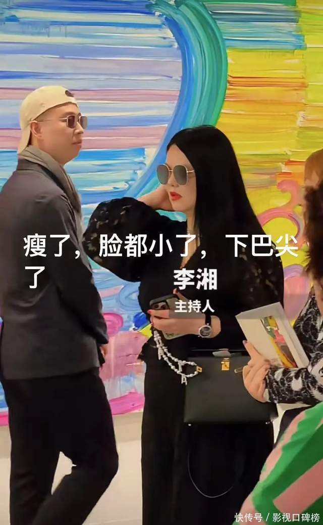 有意思的是,李湘在室内还戴着墨镜。一把乌黑的长直发披散着,不过,她的发质真是很好,气血足吧。